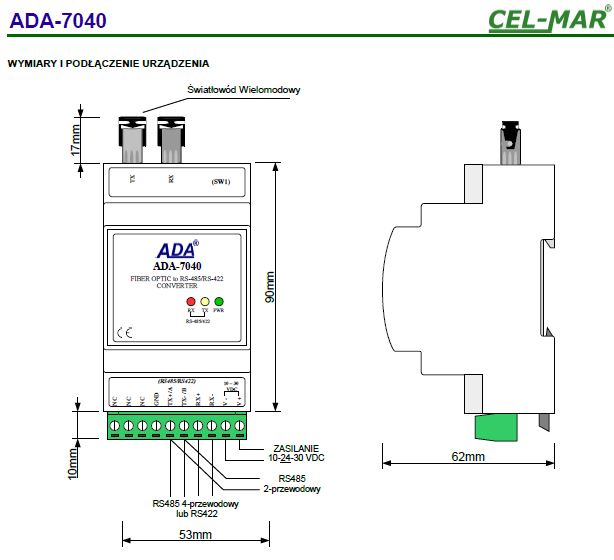 RS-485 / RS-422 to Multi-mode Fiber Optic Converter ADA-7040