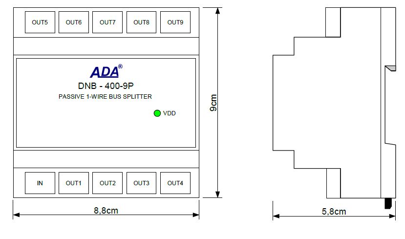 Information![]() Passive DNB-400 Spliter is used for connection of digital sensors: DTS-103, DTS-107 remote multi-point temperature measurement system of: